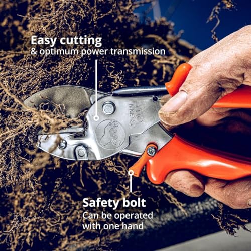 Het krachtige snijsysteem van de aambeeld handschaar wordt gekenmerkt door een trekkende snede op een vaste ondergrond en zorgt zo voor extra gemakkelijk snijden door optimale krachtoverbrenging