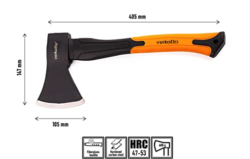 ✅ Ergonomie: de mini-bijl heeft een ergonomische glasvezelhandgreep met antislip rubbermateriaal voor een betere grip en een uitstekende balans en optimale trillingsabsorptie, wat een hoog werkcomfort en veiligheid garandeert