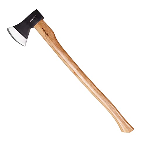 Hoge kwaliteit: De houten bijl heeft een verzonken gesmede kop van hoogwaardig gehard koolstofstaal die de bijl duurzamer maakt, een gladde, scherpe en snelle opening geeft en langer scherp blijft dan conventionele bijlen. De tuinbijl heeft een speciaal geïmpregneerd, gelakte steel van roestvrij hickoryhout. Deze houtsoort heeft een lange levensduur en dempt trillingen bij het kappen of splijten van hout.