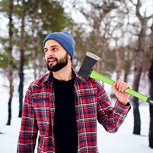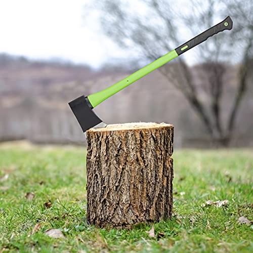 Relaxdays bijl met glasvezel steel, outdoor, slipvast, rubberen handgreep, hak- of kloofbijl, 85 cm lang, groen-zwart