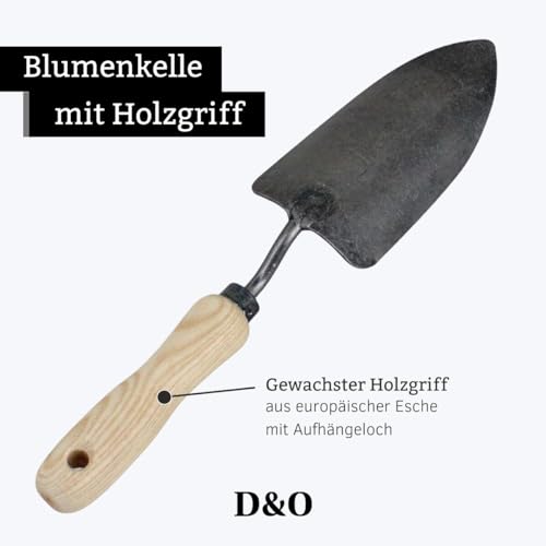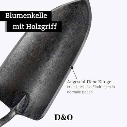 D&O X-Treme Bloemschep, van gesmeed boorstaal met houten handvat (essen), totale lengte 35 cm, plantenschep, tuinschep, bloemenschep, handschep