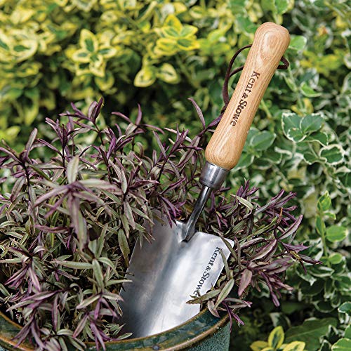 Kent & Stowe Handschep – Bloementroffel van roestvrij staal voor planten en verpotten, plantenschep met handvat van essenhout, lengte: 33,5 cm