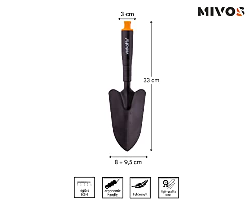 Mivos Metalen bloemenschep voor in- en verplanten, kleine plantentroffel voor tuin en balkon, handschep voor tuinieren, handschep met werkbreedte van 8 cm