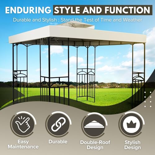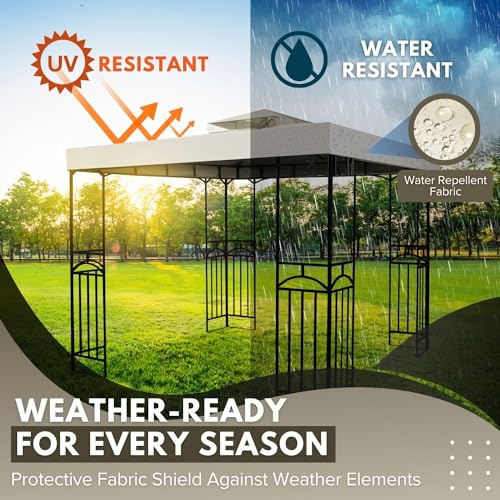 - 1 x 8 x 8 Gazebo Canopy Replacement Top Waterdichte Cover – Outdoor Gazebo Canopy Cover – Double Tier UV30 Cover voor luifels, tuin, terras, binnentent (ivoor)
