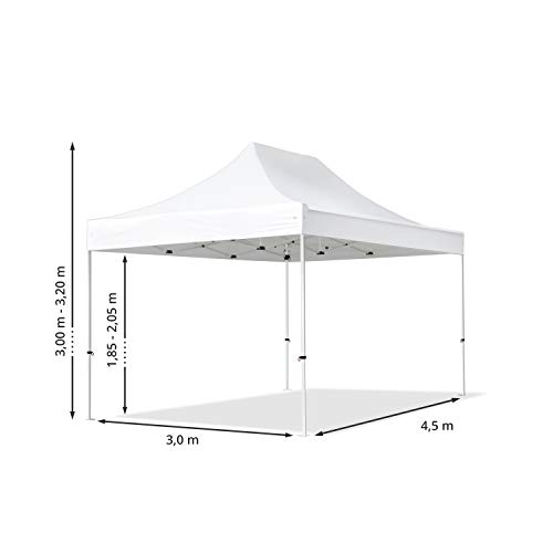 STABILITEIT & FUNKTIONALITEIT: Sterke, roestvrije stalen buizen met hoogwaardig kliksysteem en een vierkant profiel van ca. 31×31 mm. De easy up is door het moderne schaarmechanisme eenvoudig opvouwbaar, opgevouwen neemt de easy up slechts weinig ruimte in en het is op 3 hoogtes verstelbaar.