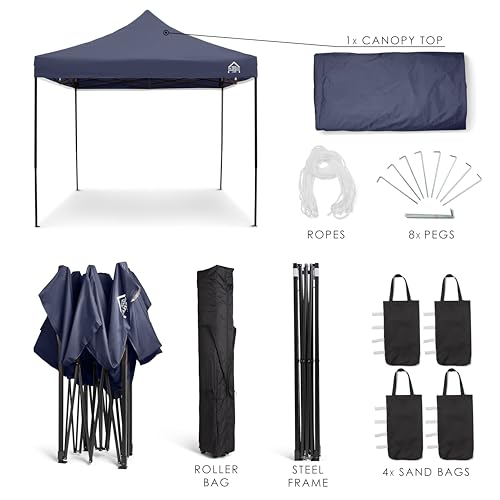 All Seasons Gazebos 3x3m Heavy Duty volledig waterdicht pop-up tuinhuisje met accessoirepakket – marineblauw