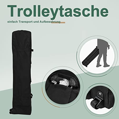 FINFREE Paviljoen, 3 x 3, waterdicht, stabiel, winterbestendig, tuinpaviljoen met 4 zijwanden, trolleytas met wielen voor markt, tuin, binnenplaats, donkergroen