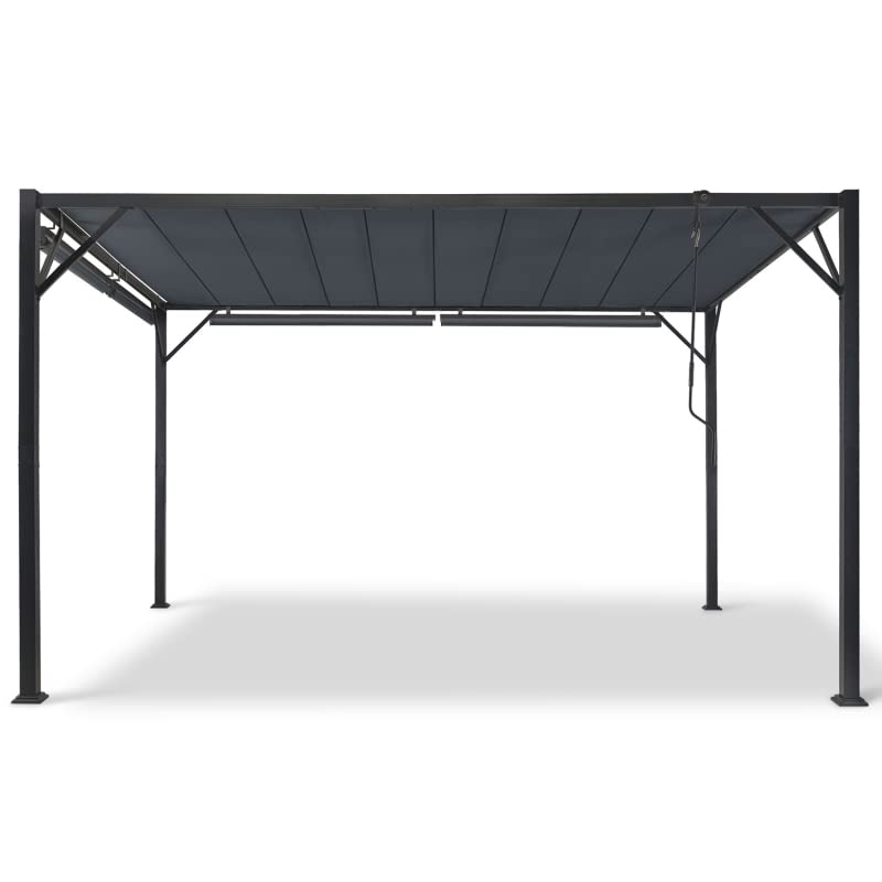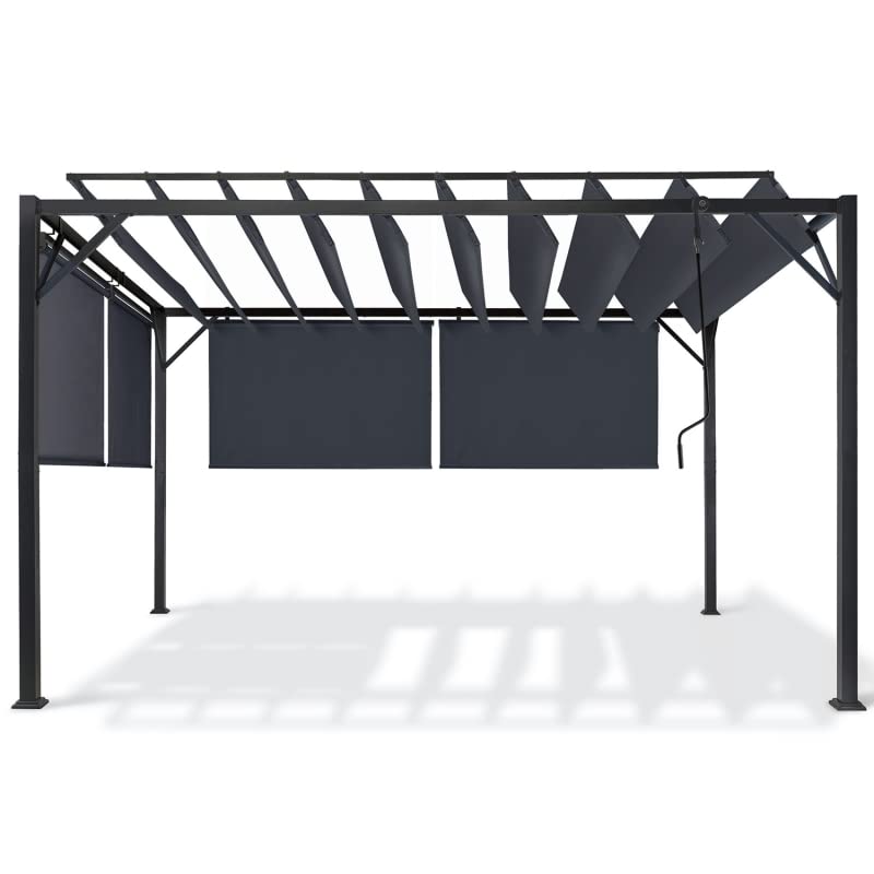 IDMarket – Pergola Deluxe Edition draaibare messen 3 x 4 m en 4 jaloezieën, antracietgrijs