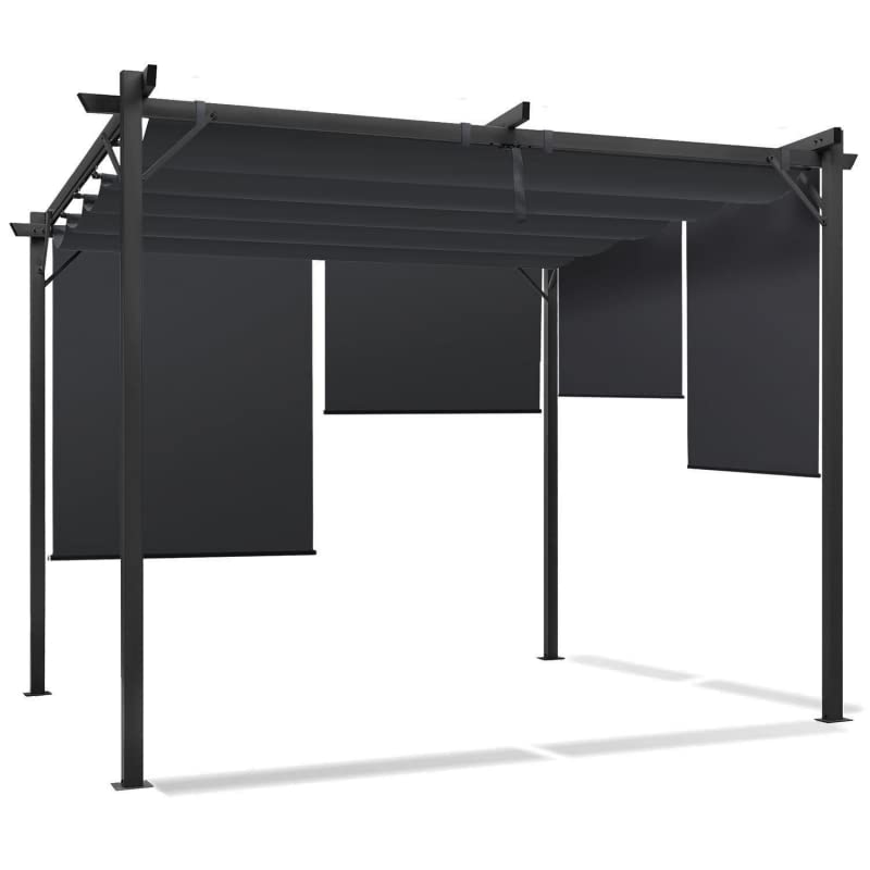IDMarket – Pergola speciale editie, uittrekbaar dak 3 x 3 m en 4 jaloezieën, antracietgrijs