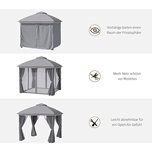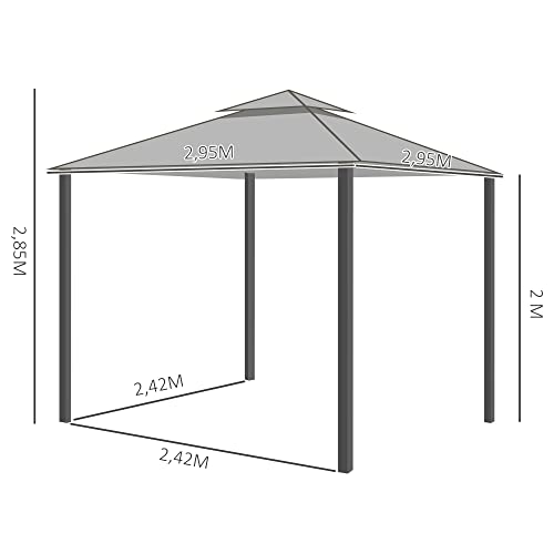 Outsunny tuinpaviljoen paviljoen 3 x 3 m tuintent met dubbele daktent partytent met 4 x zijwanden muskietennet weerbestendig aluminium polyester donkergrijs | Aosom