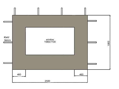 - 2 zijpanelen met venster in de afmetingen 250 x 190 cm.