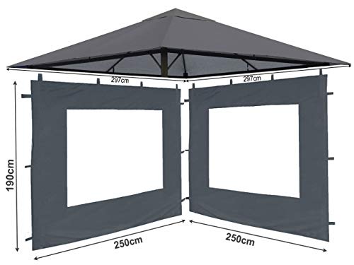 QUICK STAR Set vervangend dak en 2 zijpanelen voor tuin paviljoen 3x3m grijs RAL 7012 antiek paviljoendak vervangende bekleding zijwand