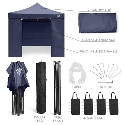 All Seasons Gazebos 3x3m Heavy Duty volledig waterdichte pop-up tuinhuisjes en 4 premium zijwanden – marineblauw