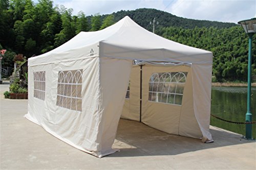 All Seasons Gazebos Zeer verplicht, volledig waterdicht, pop-up tuinhuisje met 4 premium zijwanden. Beschikt over een 260 g/m² pvc-gecoat polyesterdak en 210D PU-gecoate zijwanden. Dit robuuste paviljoen kan zonder zijwanden als strandcabana of picknickschuilplaats worden gebruikt. Het gepoedercoate stalen frame kan in 2 minuten met 24 winddichte steunstangen worden opgebouwd. De draagtas met wielen bevordert de volledige draagbaarheid en beschermt je paviljoen tijdens het transport en de opslag. Ideaal voor gras-, zand- en bodemoppervlakken met beengewichten, haringen en scheerlijnen. Dit veelzijdige paviljoen is geschikt voor beurzen, ambachtelijke beurzen, bruiloften en picknicks. Maatregel 3: lengte van 6 meetinstrumenten. Komt puur beige kleur.