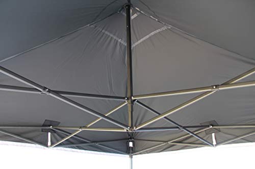 Dit paviljoen is volledig waterdicht en niet alleen waterdicht, je kunt er een slang omheen houden en de 260 g/m² binnendringen. MTR, PVC gecoat polyester dak en het water loopt eenvoudig door het matzwart, roestbestendig, gepoedercoat frame, dat 24 ingebouwde steunstangen in het dak en aan de randen heeft aangebracht, om te voorkomen dat de goedkope paviljoenen deze eventueel beschikbaar zijn.