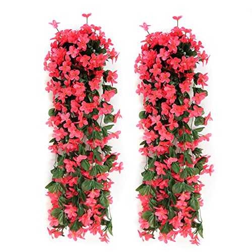 wocpvm 2 stuks Kunstbloemen, 70 cm, viooltjes, hangende kunstklimop met rozerode bloemen, hangende bloemen, voor kantoor, woondecoratie, tuin, feest, bruiloft, rozerood
