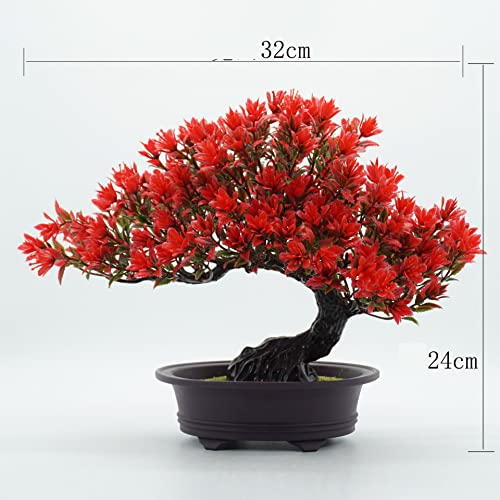 Kunstmatige Bonsai Boom, 9.4″ Simulatie Pine Tree Ingemaakte Plant Kunstmatige Plant Decoratie, Nep Bonsai Plant Ornamenten voor Binnen/Buiten Thuiskantoor, Rood