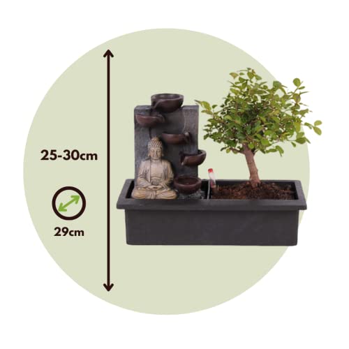 Plant in a Box – Bonsai boompje met Easy-care watersysteem én stromende waterval over Buddha beeldje – kamerplant – Hoogte 25-35cm