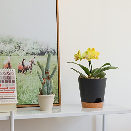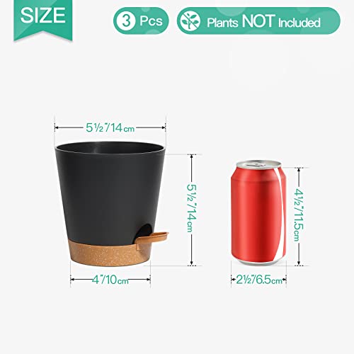 T4U Kunststof Bloempot Zwart Set van 3, Φ5.5cm Rond Plantenpot met Bewateringssysteem voor Binnen en Buiten, Decoratie voor Thuis, Kantoor