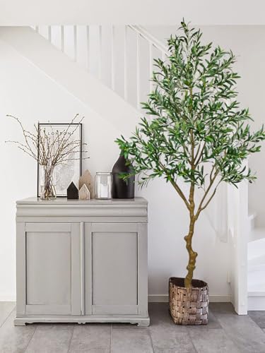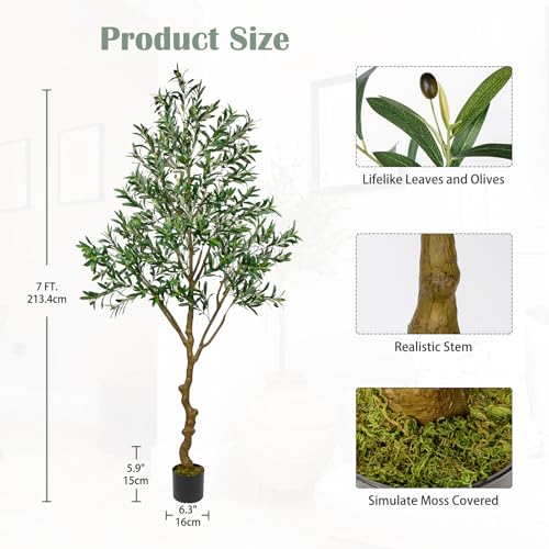 Oairse 210 cm, olijfboom, kunstplanten, grote kunstplanten, kunstplanten, nep plastic planten in pot, kunstboom, als echt voor woondecoratie, kamerdecoratie, slaapkamerdecoratie