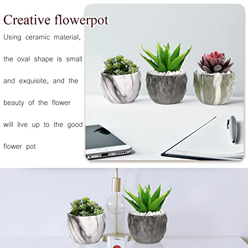 Fippy 4 STKS Keramische Succulente Plant Pot Mini Marmeren Bloempot Kleine Cactus Plant Pot met Drainage Gat voor Thuiskantoor Balkon Decor, 8,5 cm