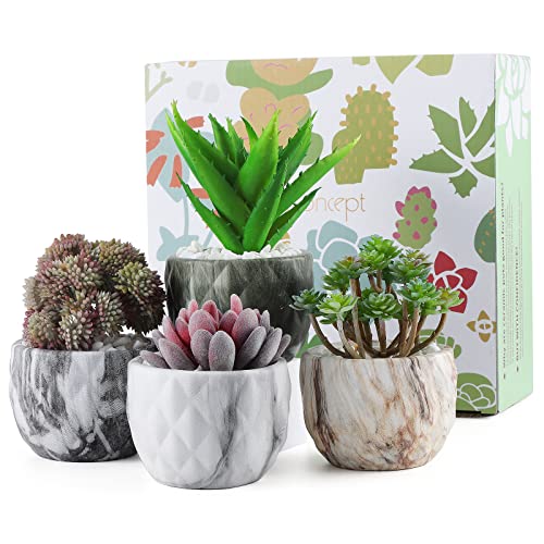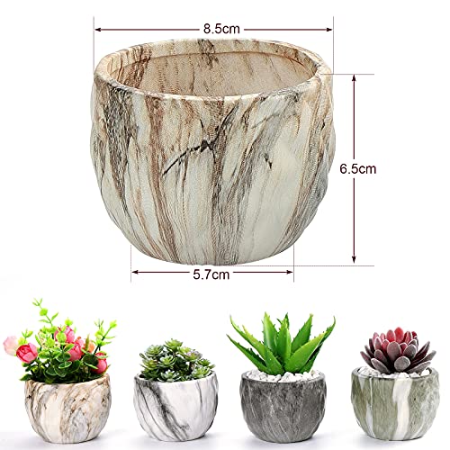 ✿【Pakket bevat en grootte】Inclusief 4 stuks marmerende sappige potten, Geschatte grootte: 8,5* 5,7* 6,5 cm (L* B* H). Elke pot heeft een gat in de knoop waardoor water door de grond kan stromen om uw planten te laten groeien en ademen in gezondheid. OPMERKING: Plant zijn niet inbegrepen.