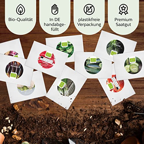 BIO Groenten zaden Set biologisch met 10 Groentevariëteiten – Groentezaden Mix Groeiset voor aanplant ideaal voor Terras, Balkon, Tuin & moestuin