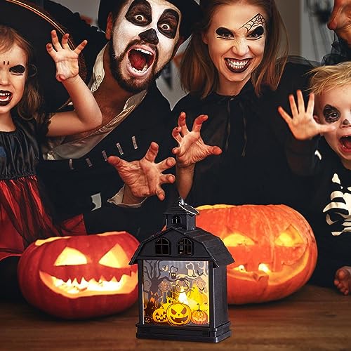 ➢Creëer een festivalatmosfeer: breng de Halloween-festiviteiten tot leven met onze draagbare lantaarn. Geef je ruimte een griezelige uitstraling, met pompoenen, heksen, skeletten en vogelverschrikkers in een noir spookachtig landhuissilhouet.