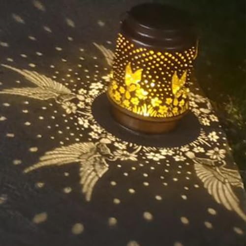 Zceplem Solar Hummingbird Lantern – Solar Garden LED-lantaarns – uitgehold metalen decoratieve lantaarn voor terras, gazon, tafelblad, stoep