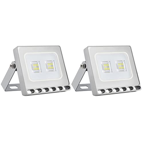 10 W LED Flood Lights Outdoor 800LM Super Heldere Beveiliging Licht IP65 Waterdichte Spotlights 6500 K Daglicht Wit Tuin Muur Schijnwerper voor Veranda Trap Voordeur Dek Gazon Garage, 2 Pack