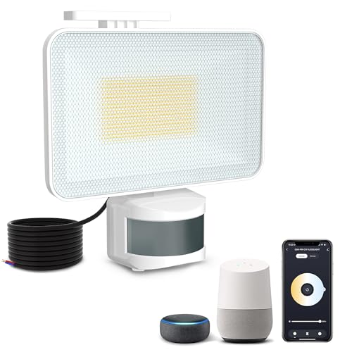 HELLYMOON 50W LED spot met bewegingssensor met APP Besturing, 6500K Koude Warme LED Flood Light, 5000LM Verlichting IP65 Waterdicht Buitenlicht, LED Wandlamp voor Tuin, Patio (Wit)