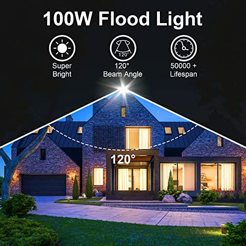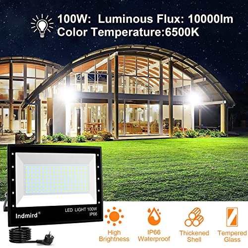 Indmird 100W LED Schijnwerper, 2 Stuks Super Helder 10000LM LED Flood Light Koudwit 6500K Buiten Schijnwerper IP66 Waterdichte LED Buitenlampr voor Tuinen, Binnenplaatsen, Garage, Hote