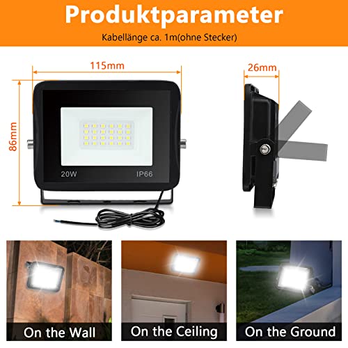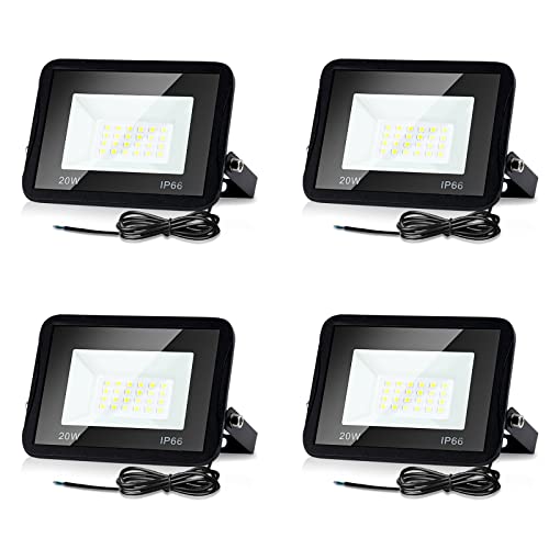 Izrielar Outdoor LED Floodlight, 4pcs 20W 3000K Warm White Light, 1700LM Super Bright Flood Light Wall Tree Light Mood Light Lawn Light Path Light