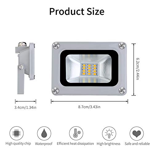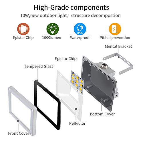 LED Flood Light 10W, Outdoor Waterproof IP65 800lm Koud Wit 6000k Beveiliging Wandlamp 50.000 Hrs voor Garage, Tuin, Auto Park, Landschap, Weg, Buitenmuur, Billboard etc.