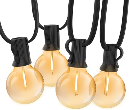 30M G40 Lichtsnoer Buiten, Bomcosy Binnen LED festoen verlichting Lichtslingers mit 50+2 E12 Lampen, IP45 Waterdicht Fairy Lights voor Tuin, Patio, Bomen, Tuin, Home Party Decoratie, Warm Wit 2700K