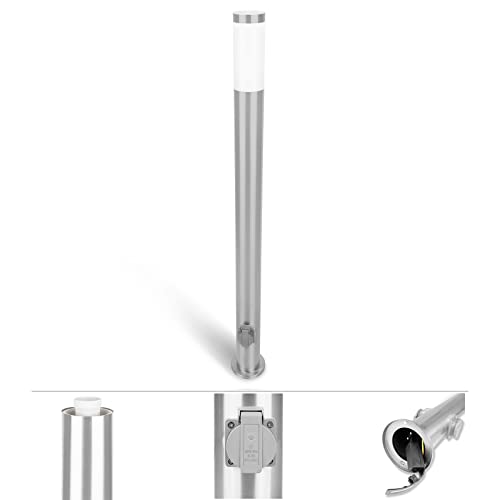 Grafner Roestvrij stalen padverlichting met 2 stopcontacten, hoogte: 110 cm, geen roest – blanke lakcoating, E27, ideaal voor slimme lampen, wegverlichting, tuinlamp, staande lamp, bolderlamp, zilver