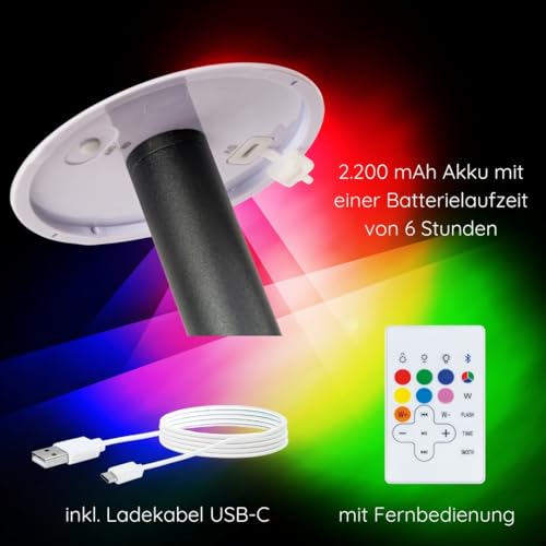 Efficiënte leds en luidsprekers: 12 x RGB-leds met 8 watt en 200 lumen zorgen voor optimale kleurresultaten, die via de afstandsbediening op 4 modi kunnen worden ingesteld. De stereo-luidsprekers beschikken over 2 x 5 watt en zijn ook via afstandsbediening te bedienen.