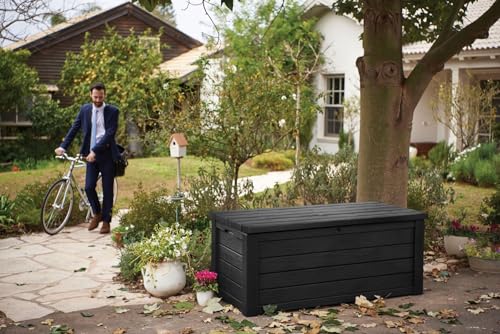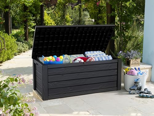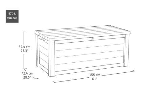 Of het nu gaat om tuingereedschap, sporttoestellen, speelgoed of kussens, de Keter Eastwood tuinbox is met een enorme inhoud van 570 liter een bijzonder ruime oplossing voor buiten. Deze veelzijdige tuinkussenbox kan ook als tweezitsbank worden gebruikt en is daardoor een praktische aanvulling voor elk terras of elke tuin. Deze stijlvolle opbergdoos in houtlook bestaat uit weerbestendig kunststof en houdt de inhoud droog en geventileerd, terwijl hij je tuin stijl geeft.
