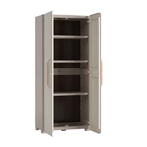 Keter Groove hoge kast voor buiten, deuren in houtlook, beige/zand, 80 x 45 x 180 H cm