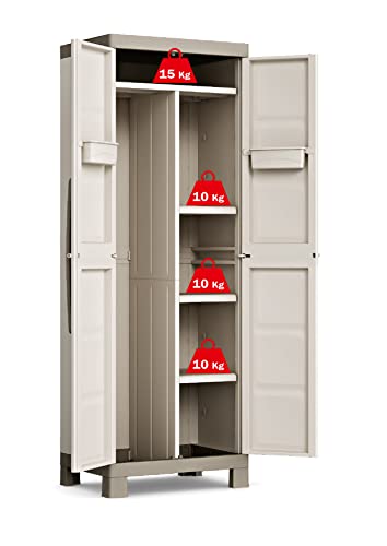 Als je gebruiksvoorwerpen van verschillende afmetingen moet opbergen, zijn de verstelbare planken van onze Excellence kastmodellen precies de juiste oplossing voor flexibel en stijlvol opbergen. De afsluitbare deuren zorgen voor extra veiligheid, de lange poten zorgen voor afstand tot de vloer en maken de kast ideaal voor garage of wasmachinekamer. Verkrijgbaar in beige/bruingrijs. Het basismodel is verkrijgbaar in beige/taupe en beschikt over planken tot 15 kg.