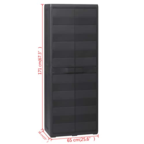 vidaXL Tuin Opbergkast met 3 Planken Patio Outdoor Terras Balkon Tool Organizer Locker Kast Meubels Zwart 65 cm x 38 cm x 170 cm
