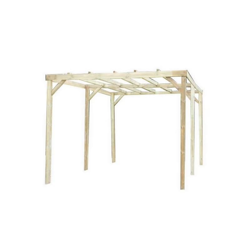 Deze houten carport wordt geleverd zonder afdekking, zodat je hem kunt laten zoals je wilt, of bedek hem met het materiaal dat het beste bij je past (zitbank, hekwerk, polycarbonaat, klimplanten…).