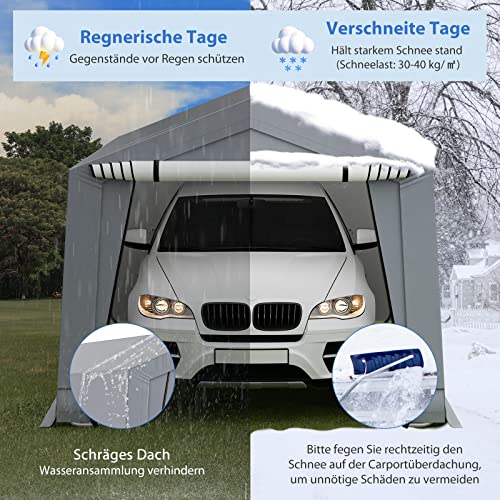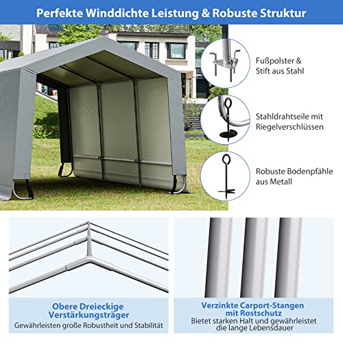 COSTWAY Garagetent carport, afmetingen: 490 x 290 x 245 cm, tentgarage met deuren, weidetent, opslagtent, garage, schuilplaats, autoschuilplaats voor SUV, boot, vracht, outdoor-evenementen