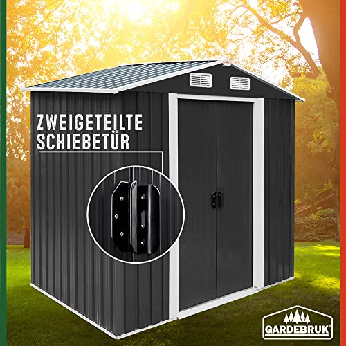 WEERSBESTENDIG – Jouw tuingereedschap blijft beschermd tegen weer en vuil in het weerbestendige metalen gereedschapshok. De 2-delige schuifdeur garandeert een gemakkelijke toegang tot het tuinhuisje. Dankzij de 75 cm brede opening kun je ook grote voorwerpen gemakkelijk door de deur krijgen.