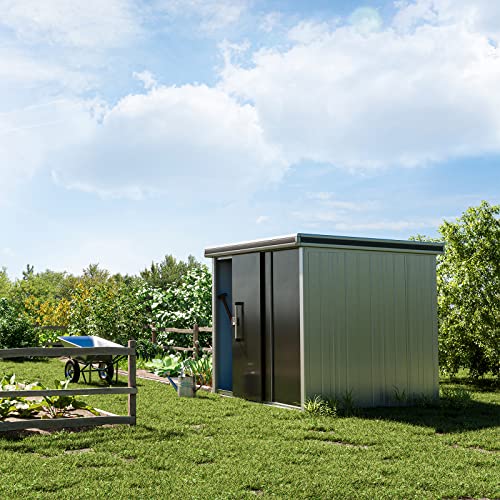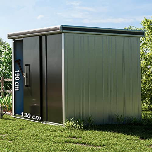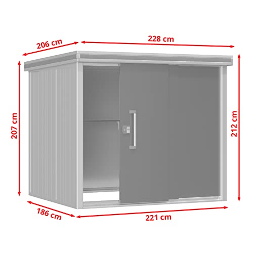 GFP Tuinschuur metalen tuinhuis 221x186x212 cm waterdicht schuurtje met plat dak en schuifdeur in antractiet
