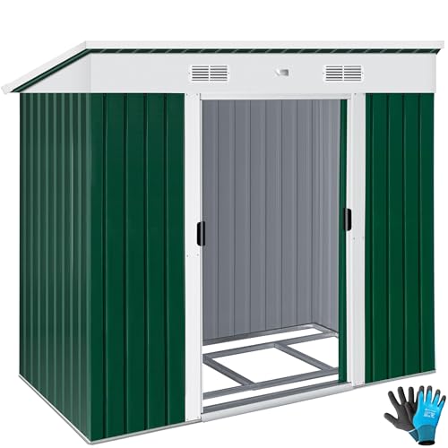KESSER® Gereedschapsschuur L, metaal, 3,4 m³ met fundament | 196 x 122 x 180 cm | 2 x schuifdeur & fundament | gereedschapsschuur | tuinhuiskast | lessenaarsdak, tuinschuur, Groen