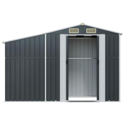 vidaXL Tuinschuur 277x93x179 cm gegalvaniseerd staal antracietkleur, brandhoutschuur, houtopslag, houtschuur, gereedschapsschuur, brandhoutopslag
