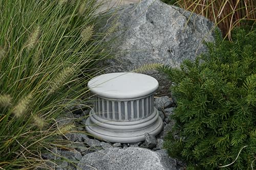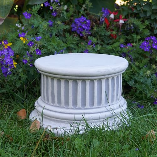 gartendekoparadies.de Massieve sokkel, platform, zuil rond met kaneluren, hoogte 16 cm, Ø boven 23 cm, grijs, 13 kg, van gegoten steen vorstbestendig