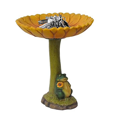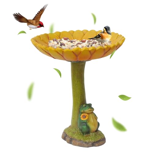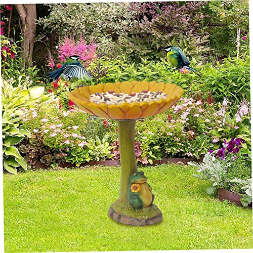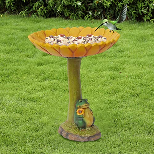 Delicaat ontwerp: weerbestendig vogelbad van hars heeft een kikkerboombasis met ingewikkeld gebeeldhouwde details op de kom. U zult genieten van de zonnebloem vogel bad lade van retro kleur, en de vogels zullen het waterbassin waarderen.