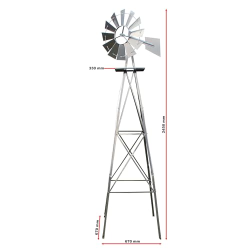 Amerikaanse windmolen windmill USA zilverkleurig 245cm met kogellager molen wind